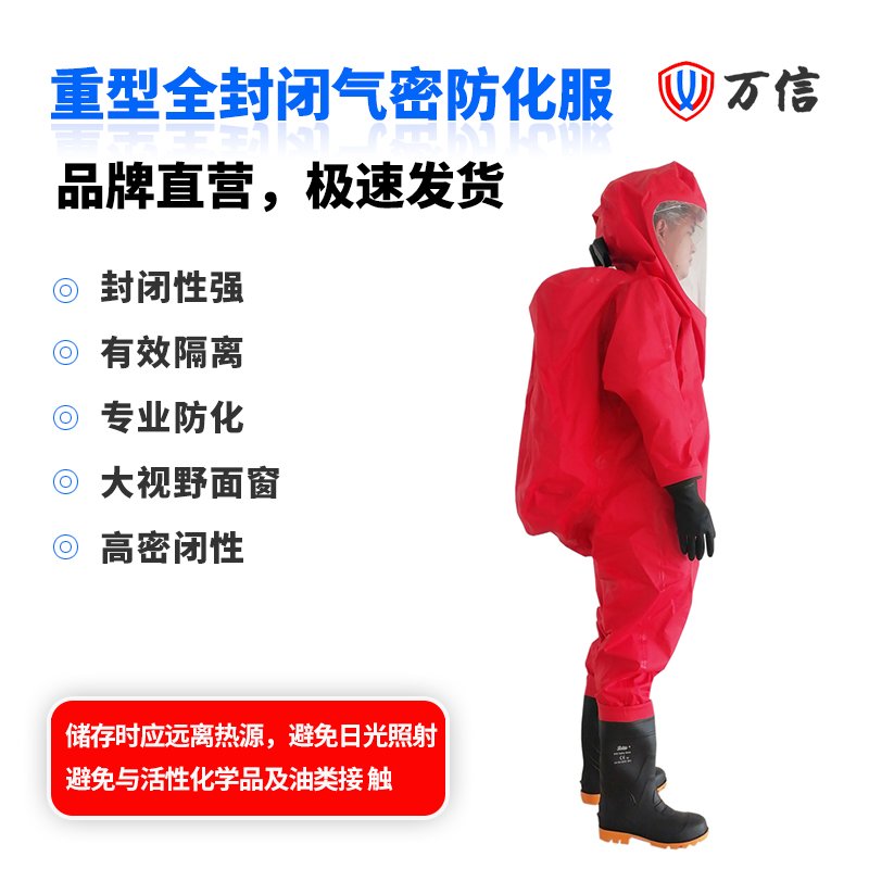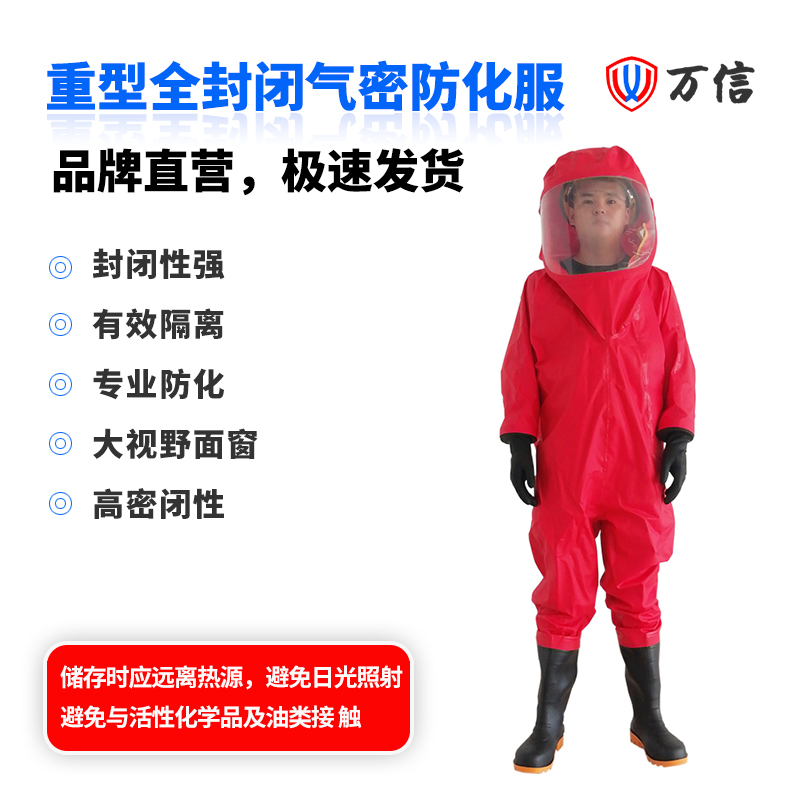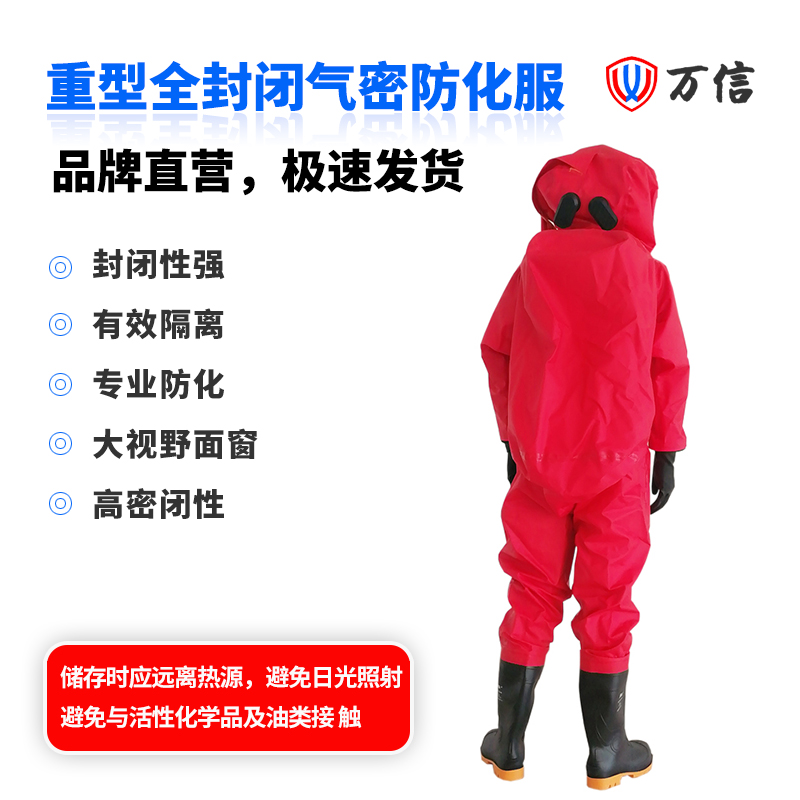 万信 重型全封闭防化服 防化服厂家产品编号:112001产品名称:重型全封闭防化服(红)产品型号:WXRHFIA产品规格:M/L/XL/XXL