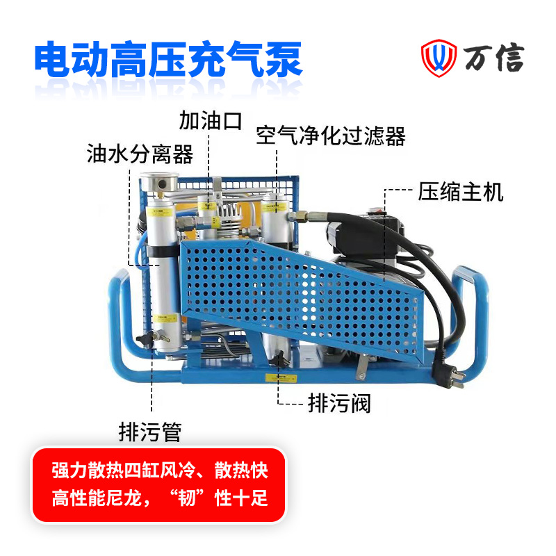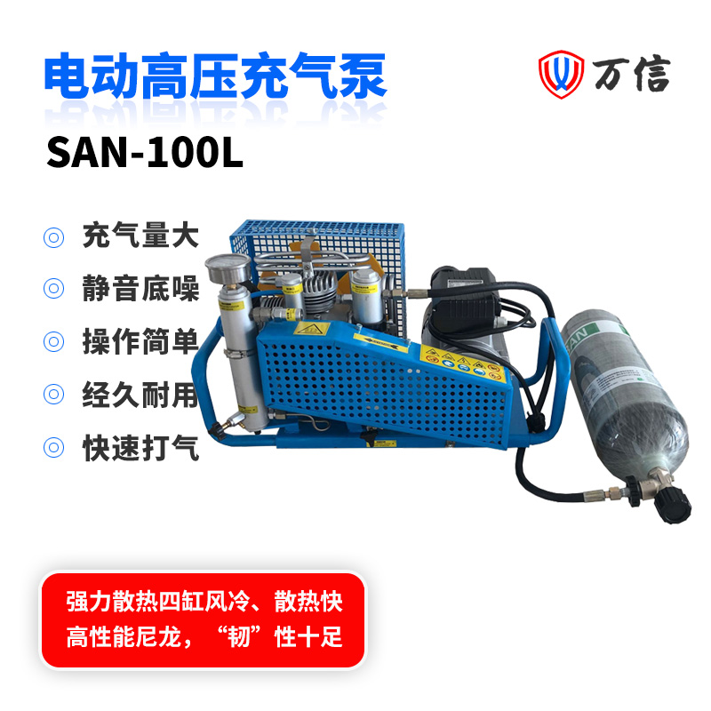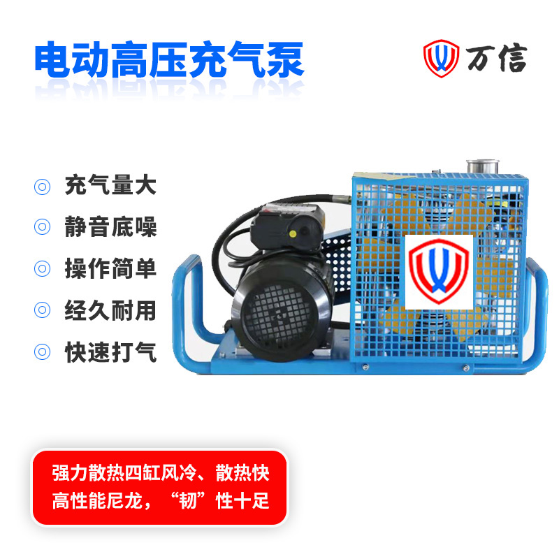 正压式空气呼吸器充气泵万信:WX-100L高压呼吸空气压缩机产品编号:116100产品名称:高压压缩机产品型号:WX-100L产品规格:380V 50HZ 2.2KW 三相电机 300L/MIN