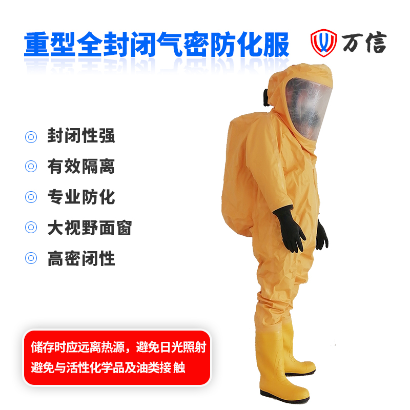 万信 重型全封闭防化服 防化服厂家产品编号:112002产品名称:重型全封闭防化服(黄)产品型号:WXRHFIA产品规格:M/L/XL/XXL